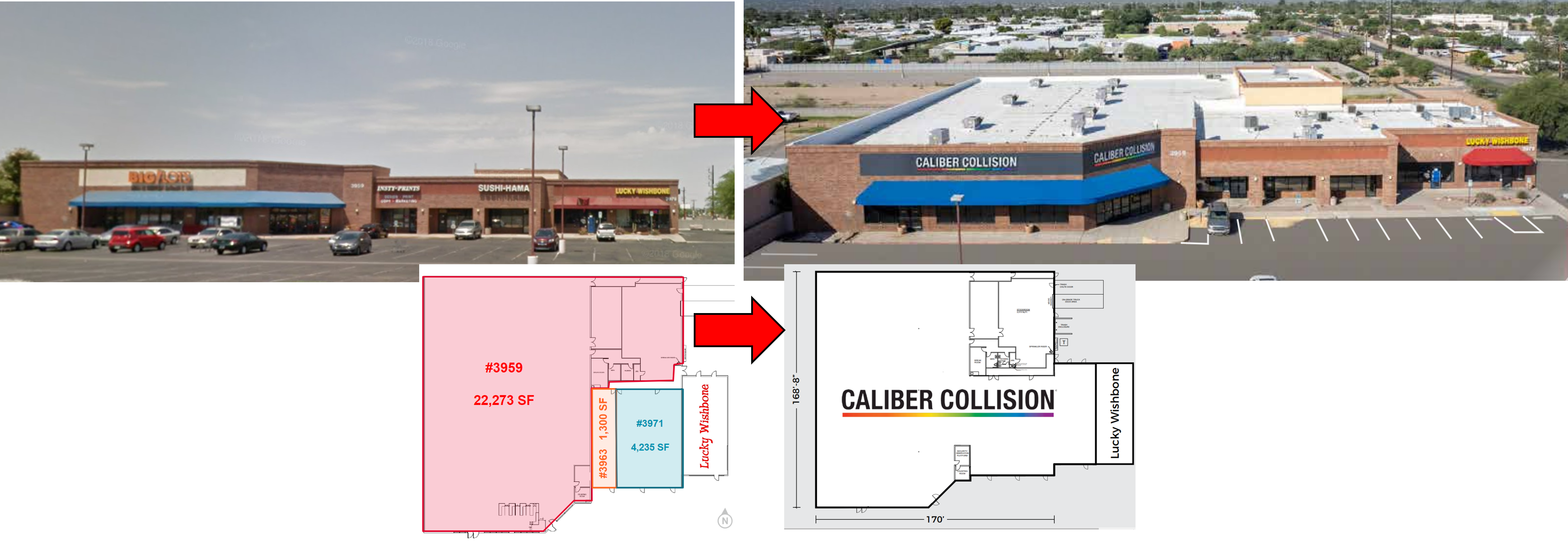 And one of Caliber’s newest locations is slated to open later this year in a former Big Lots store that anchored a small shopping center in Tucson, AZ.