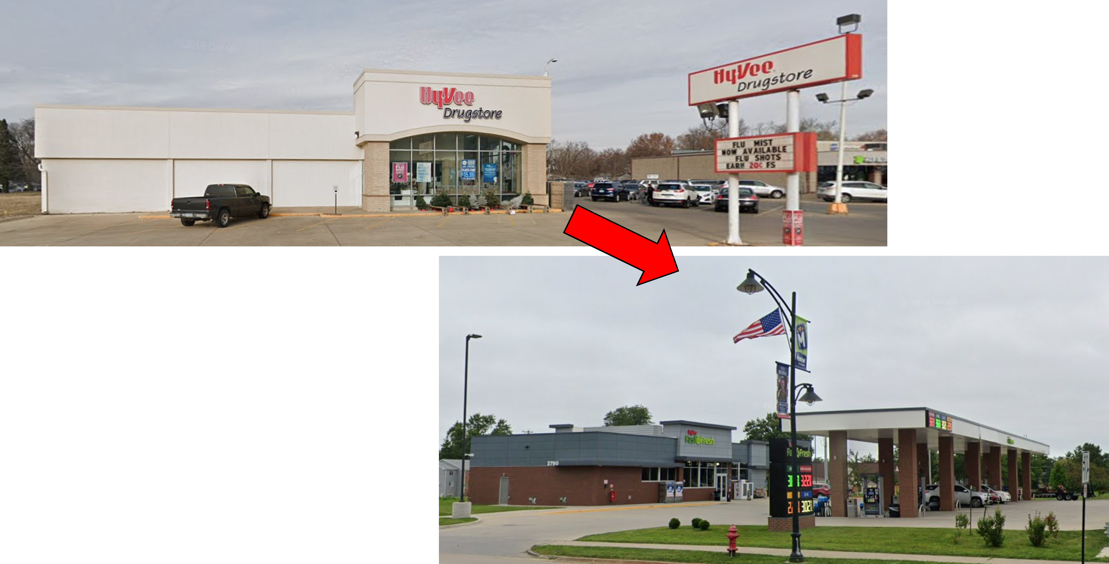 Like Iowa-based supermarket chain Hy-Vee which converted its former drugstore in Marion, IA into a Hy-Vee Fast and Fresh c-store.