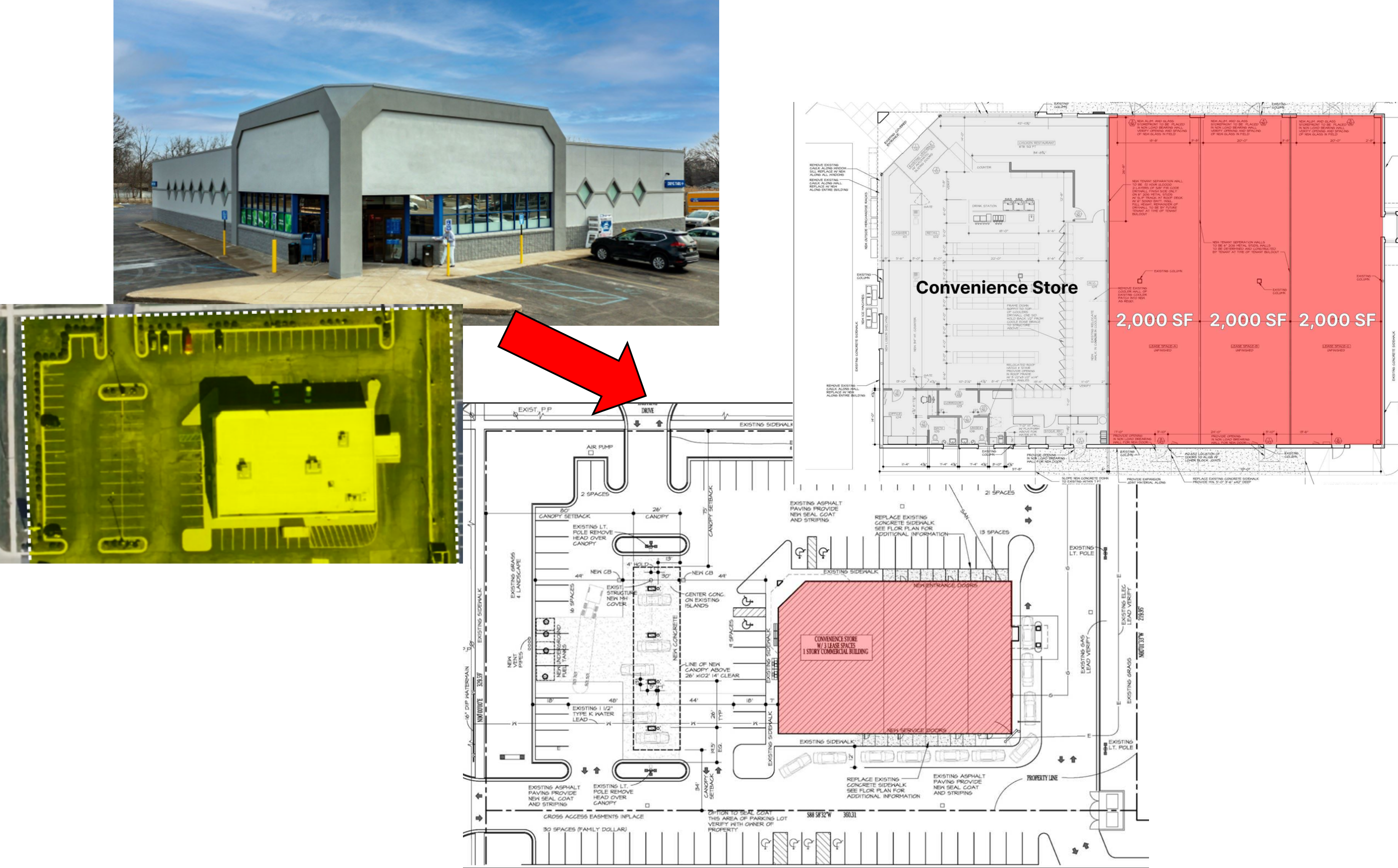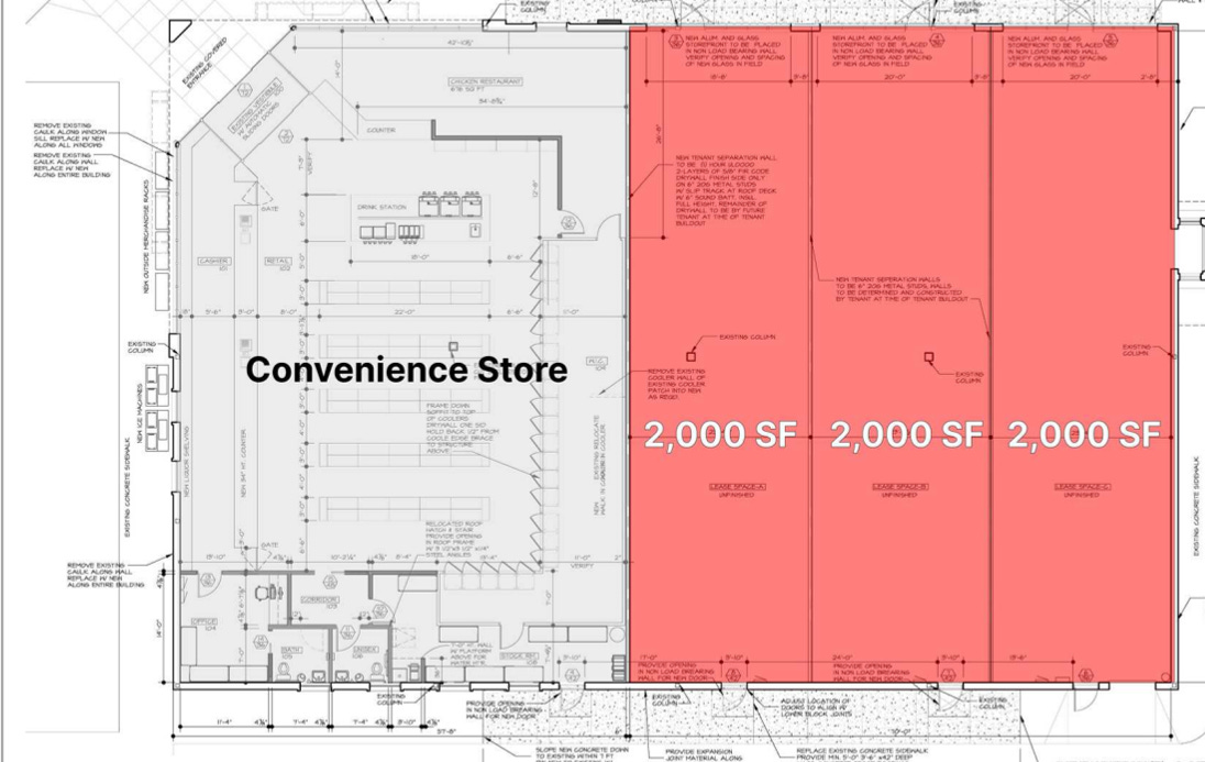 This operator plans to use ~5,000 square feet of the building as a convenience store and create three separate ~2,000 square feet suites in the rest of the building.