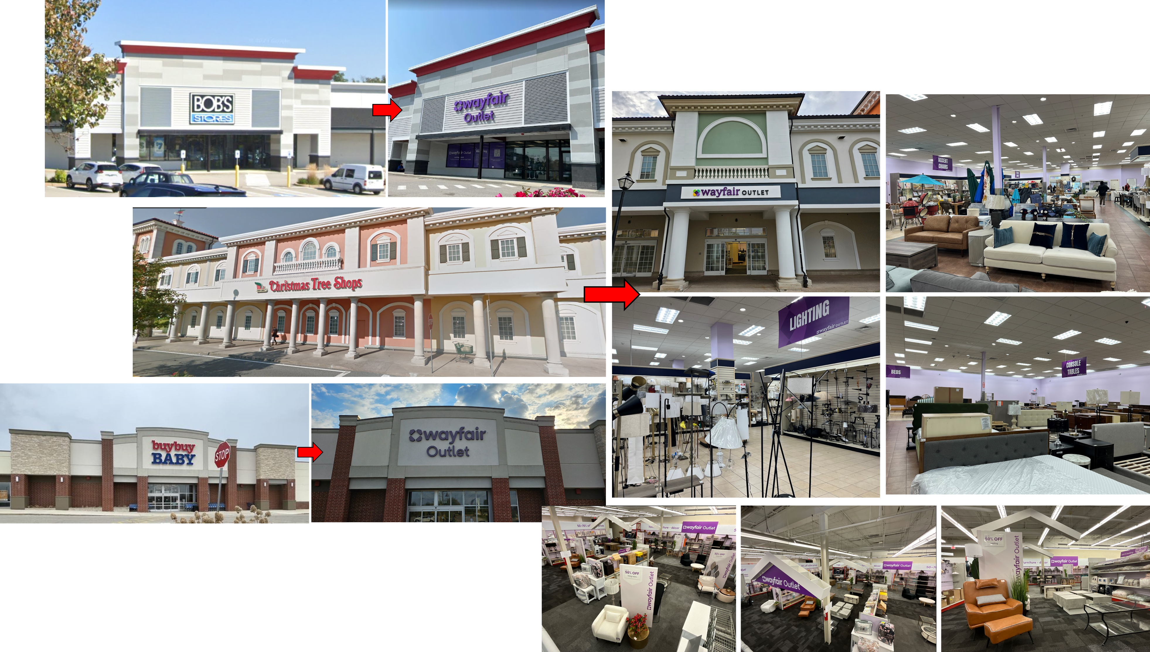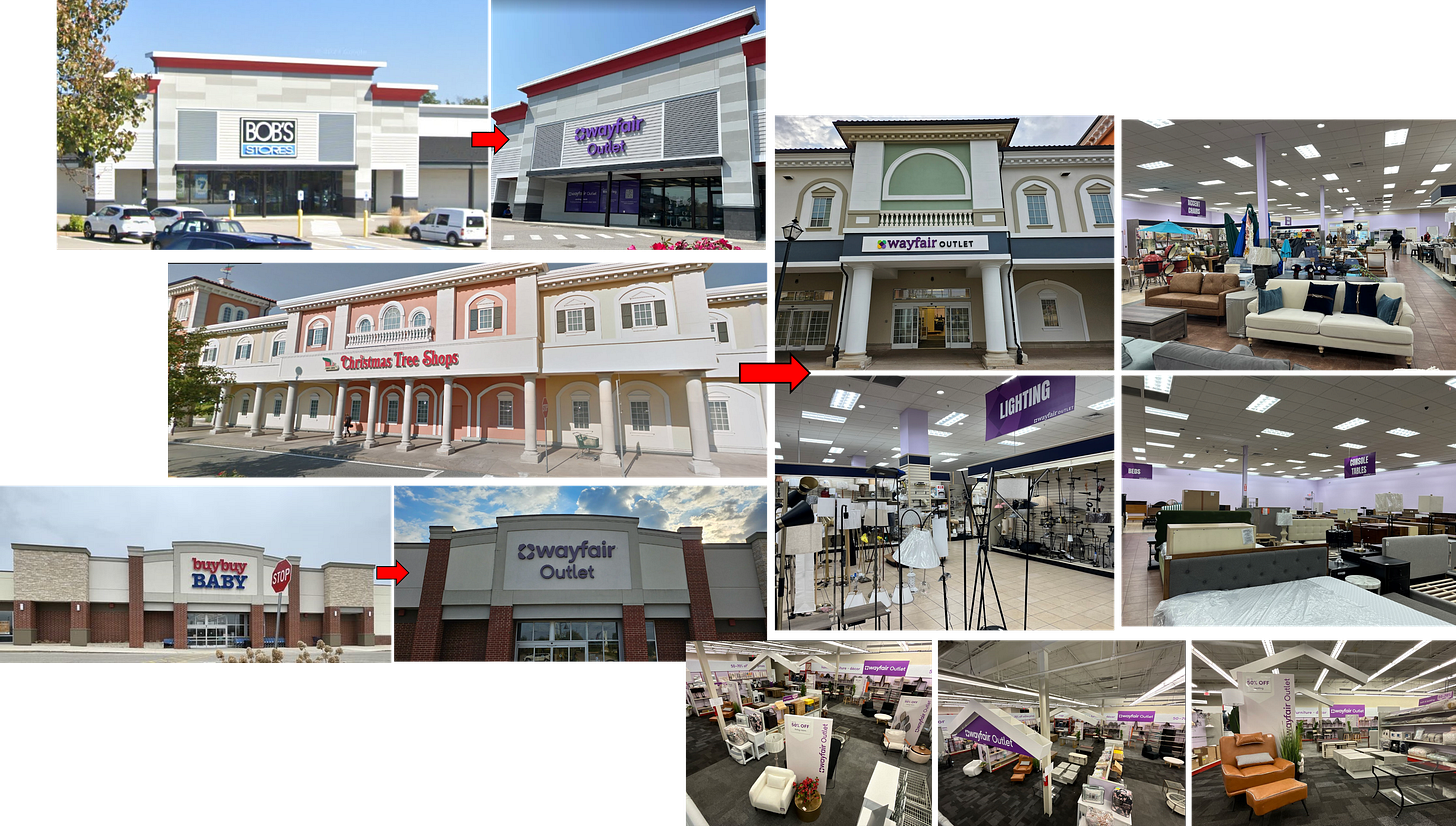 Re-tenanting vacant Big Box space has been a cost effective and opportunistic pathway for Wayfair to grow and develop its network of outlet stores.